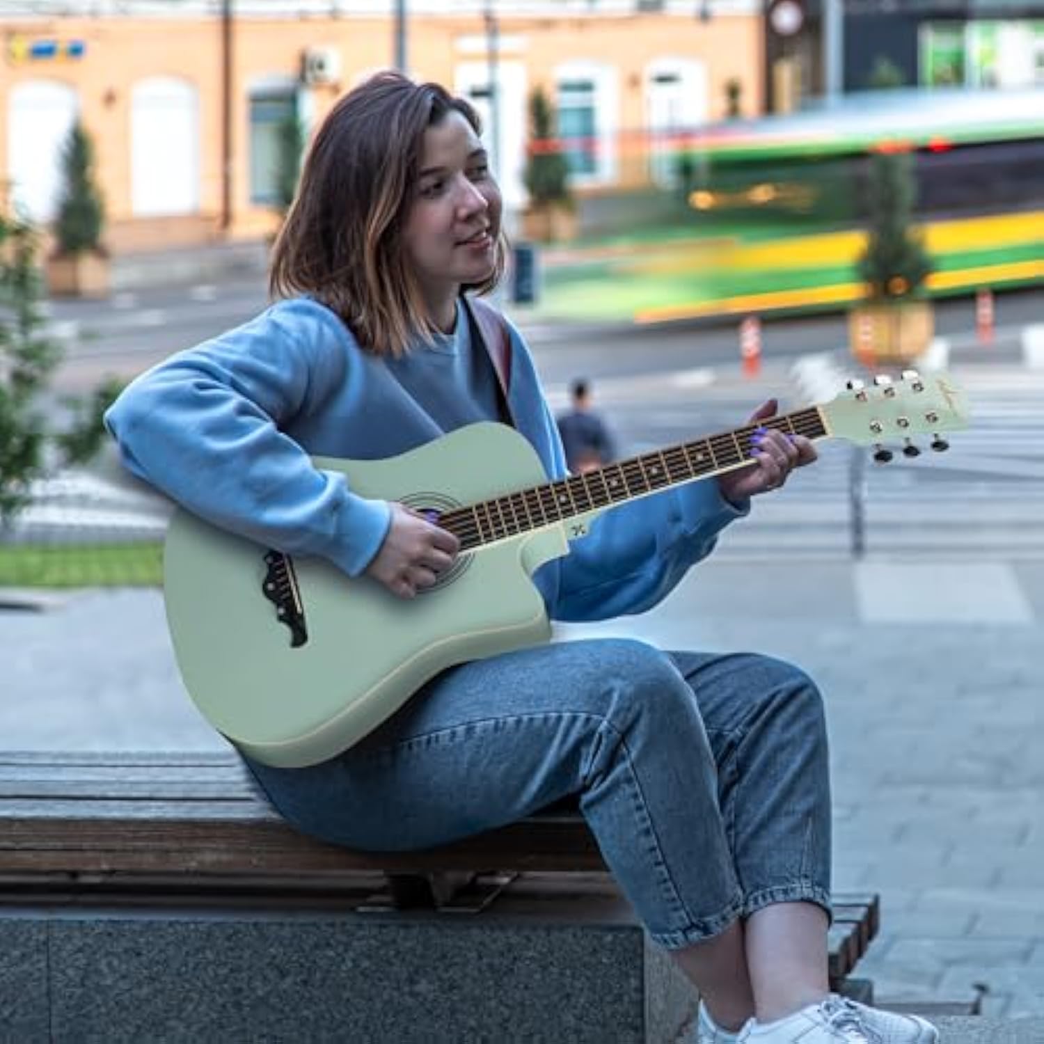 ADM 38" Inch Acoustic Guitar Bundle for Beginners Adults with Online Lesson, Cutaway Wood Acustica Guitarra Starter Set Package with Gig Bag, Strap, Steel Strings, Picks, Capos, Stand, Green