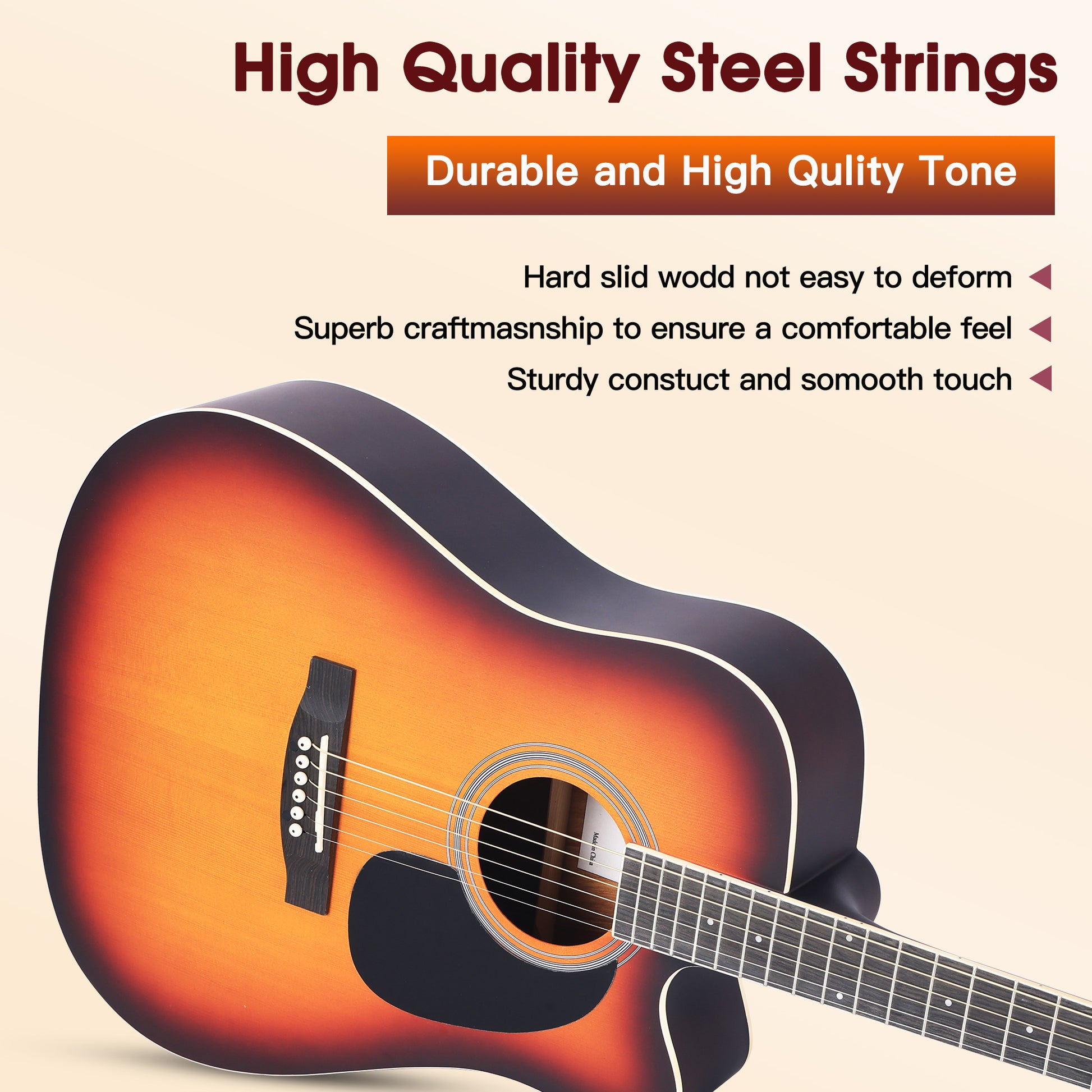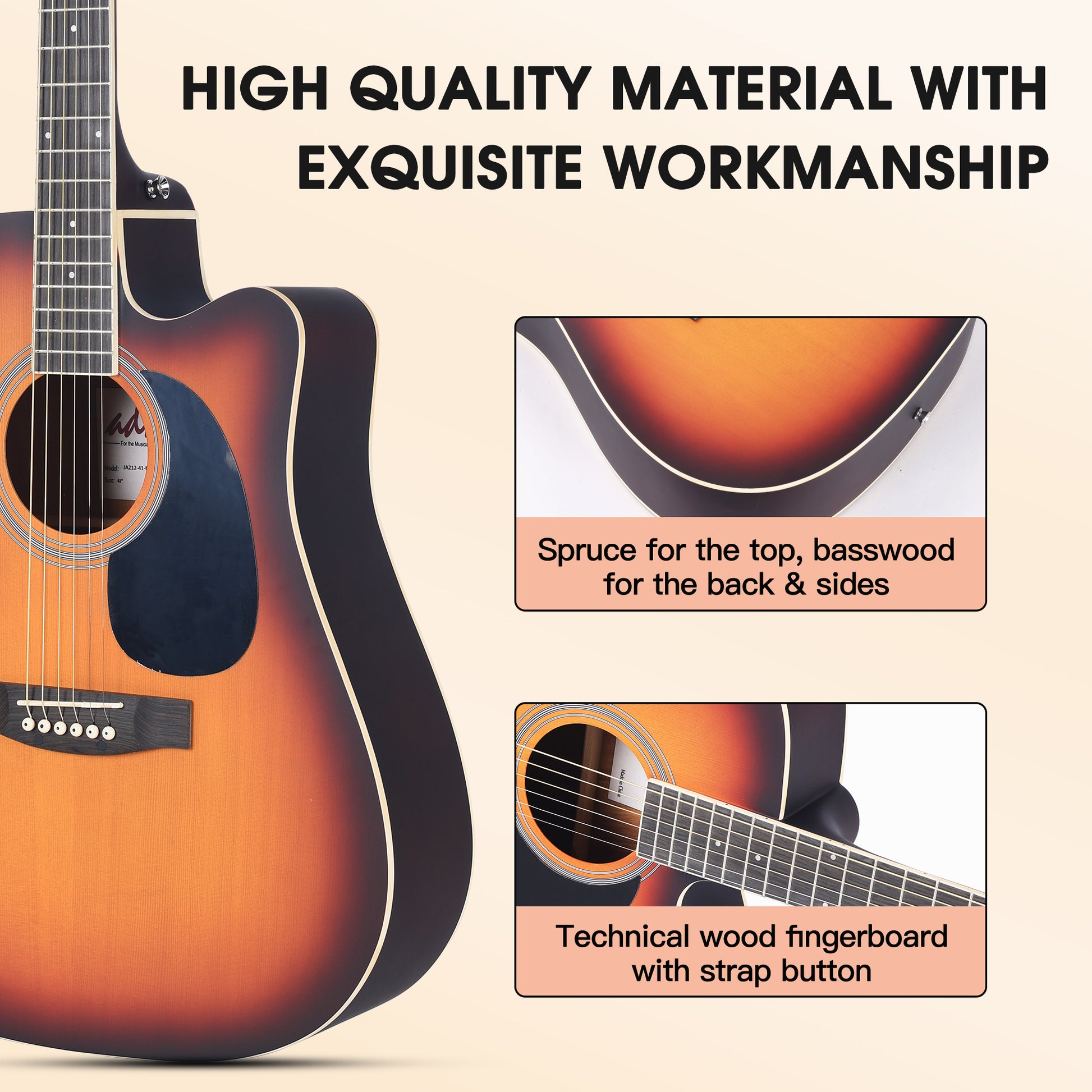 ADM Cutaway Acoustic Guitar Kit with Free Lesson for Beginner Adult Teen Full Size Acustica Guitarra Starter Bundle Set w/Bag Strap Tuner Capo Music Stand Right Hand(Sunburst-Cutaway, 41 Inch)