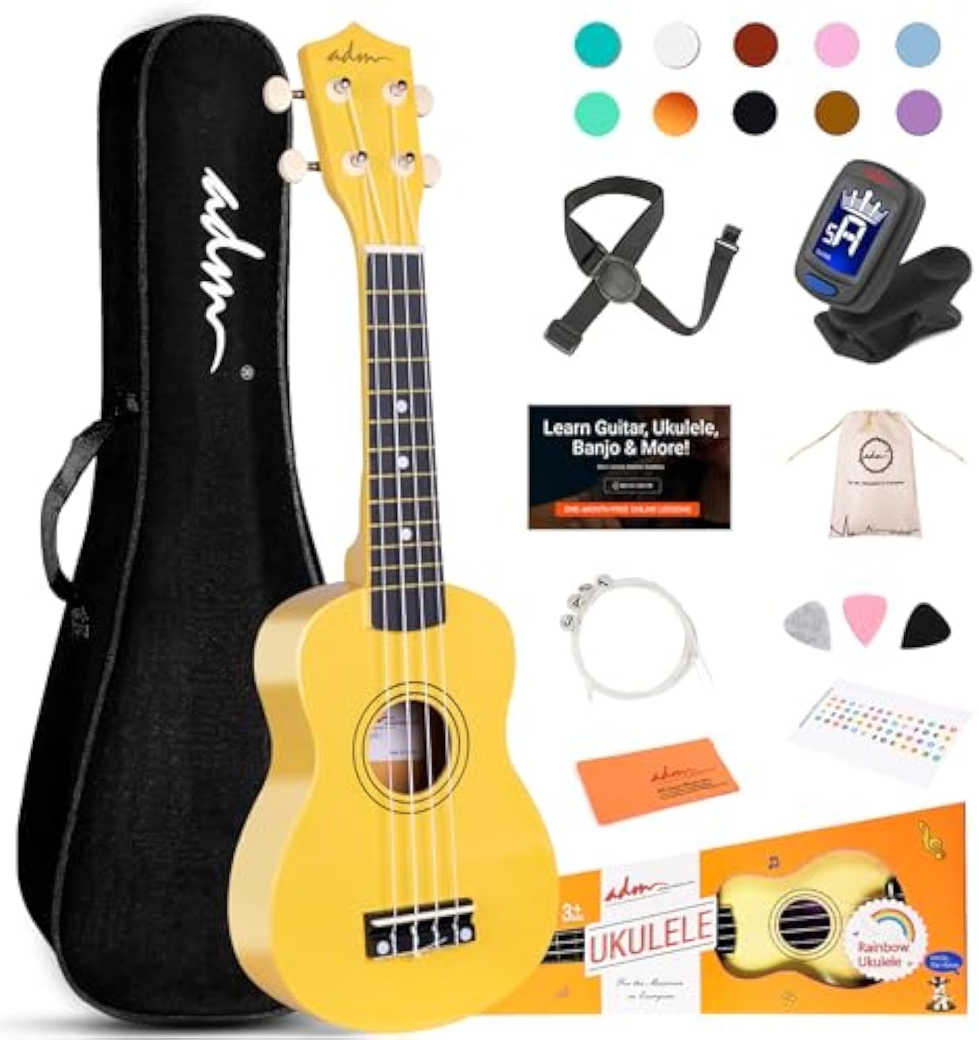 - ♫【GREAT GIFT FOR BEGINNERS】Save your hand and earned money on costly lessons, our ADM soprano ukulele together with the beginners pack is the best choice for adults or kids who are just getting started with Ukulele. Great for birthdays, Christmas, Children’s Day, housewarming, graduation gifts and much more. Now you can teach yourself the ukulele, thanks to our all-inclusive beginner's kit