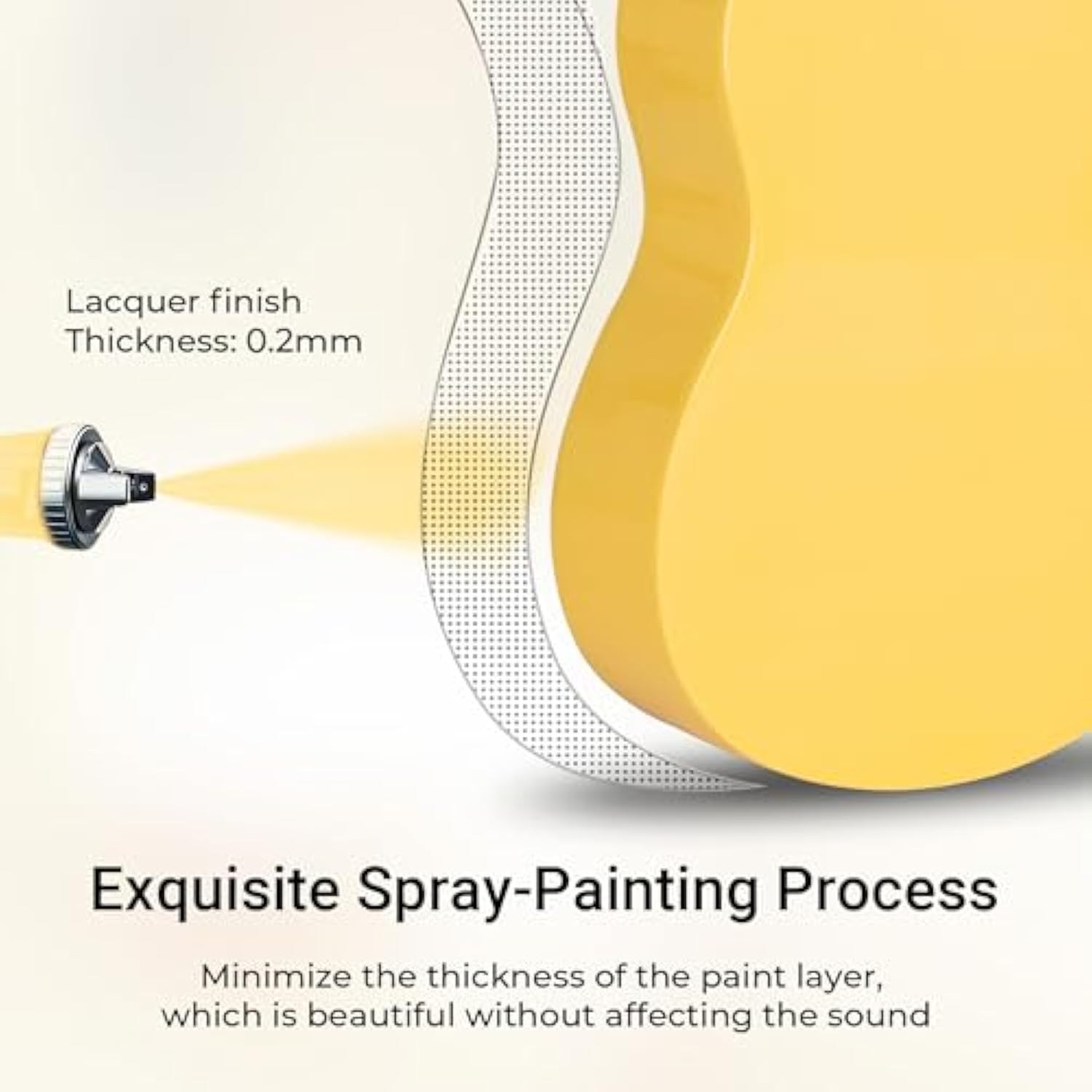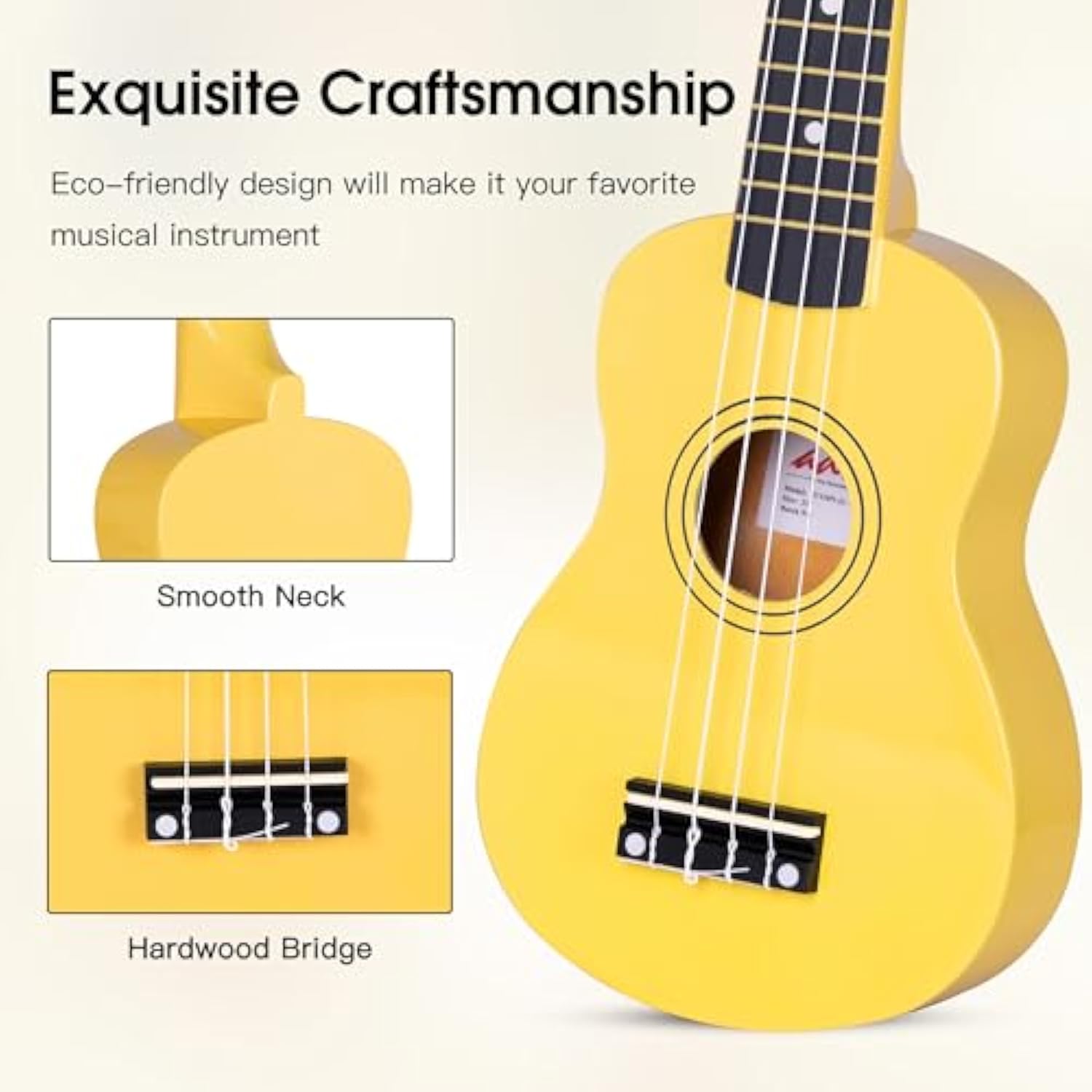 ADM Ukulele for Beginners Hawaiian Wood Ukelele Kit for Kids Adult Student Starter Professional Ukalelee Pack Bundle with Free Lessons Gig Bag Strap Nylon String Tuner (Baby Yellow, 21 Inch)